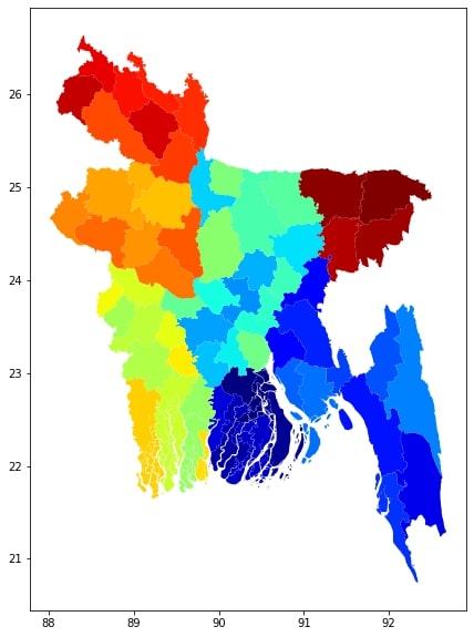 I pulled population statistics of Bangladesh and combined the data with the geographical data of Bangladesh to visualize population densityon a map.